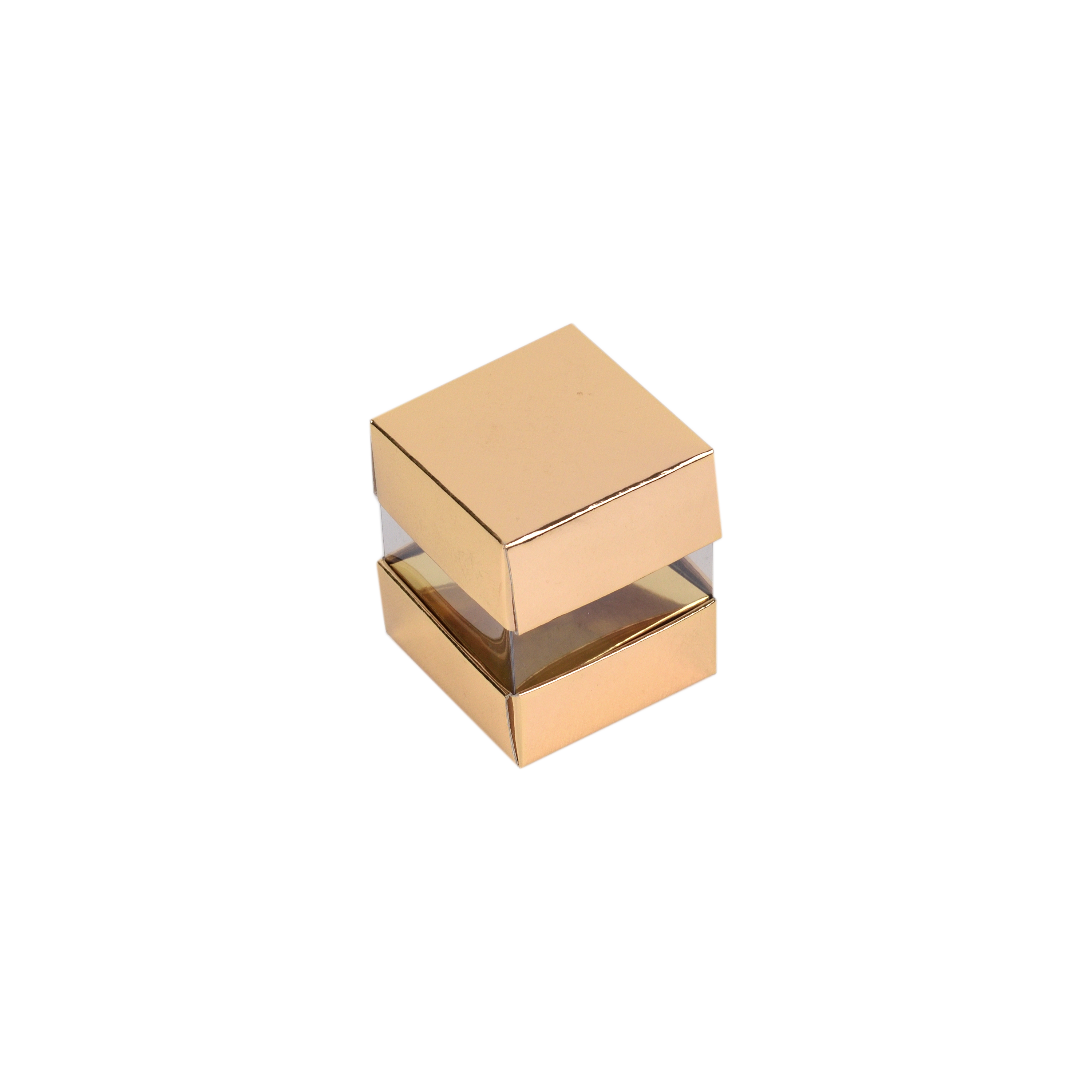 5.5.5 ebatında alt üst gold iç şeffaf kutudur.ürünler demonte olarak gönderilir.